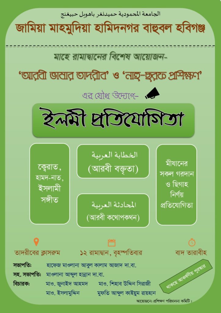 জামিয়া মাহমুদিয়া হামিদনগর মাদ্রাসার অভিজ্ঞ ও নিবেদিতপ্রাণ শিক্ষকমণ্ডলী, যারা ইসলামী জ্ঞান ও নৈতিকতা শিক্ষায় অগ্রণী ভূমিকা পালন করছেন এবং শিক্ষার্থীদের সঠিক পথে পরিচালিত করছেন।